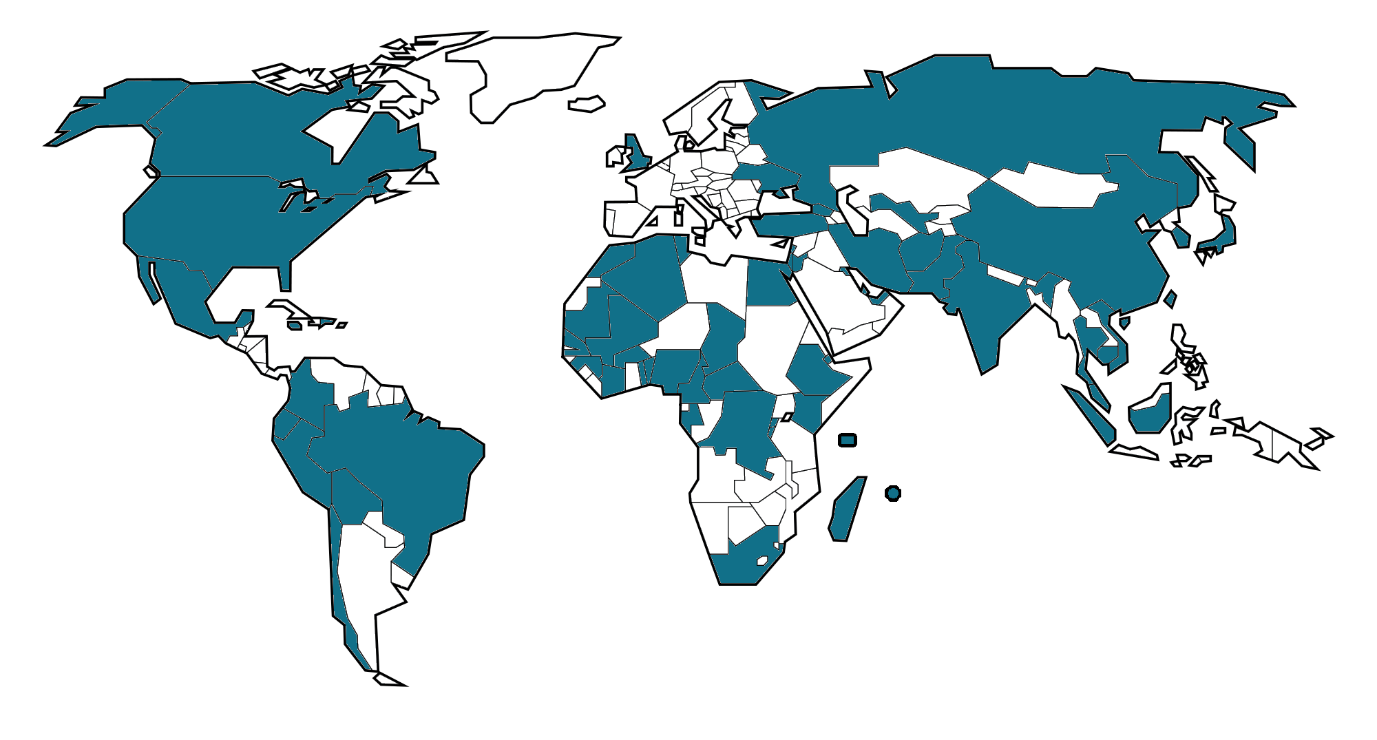 *Afrique du Sud, Algérie, Arabie saoudite, Argentine, Azerbaïdjan, Bahreïn, Bolivie, Brésil, Burkina Faso, Burundi, Bénin, Cambodge, Cameroun, Canada, Chili, Chine, Colombie, Comores, Corée du Sud, Côte d'Ivoire, Djibouti, Egypte, Emirats arabes unis, Equateur, Etats-Unis, Gabon, Ghana, Guinée, Géorgie, Haïti, Inde, Indonésie, Iran, Israël, Japon, Jordanie, Kenya, Koweït, Liban, Madagascar, Malaisie, Mali, Maroc, Maurice, Mauritanie, Mexique, Niger, Nigeria, Népal, Pérou, Qatar, Royaume-Uni, Russie, République dominicaine, République du Congo, République démocratique du Congo, Singapour, Sénégal, Taïwan, Tchad, Thaïlande, Togo, Tunisie, Turquie, Ukraine, Viêt Nam.